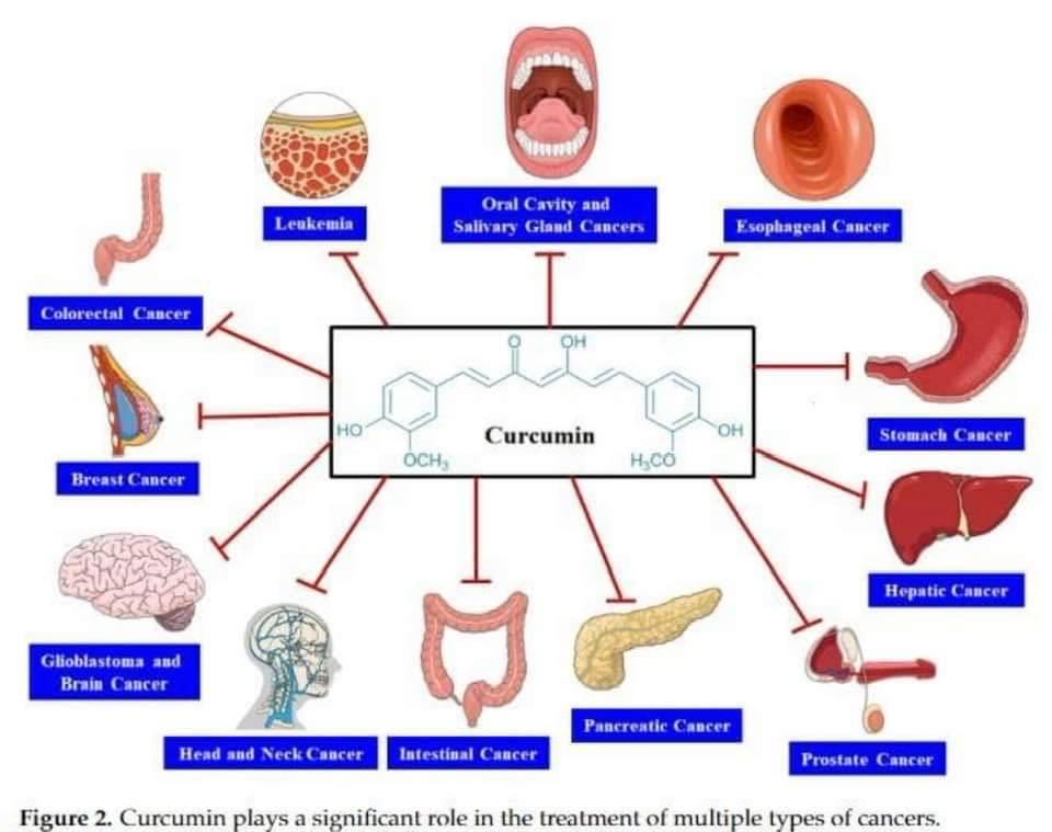 สารเคอร์คิวมินมีกลไกการจัดการเซลล์มะเร็งได้มากถึง 12 ชนิดของมะเร็ง ดังนี้